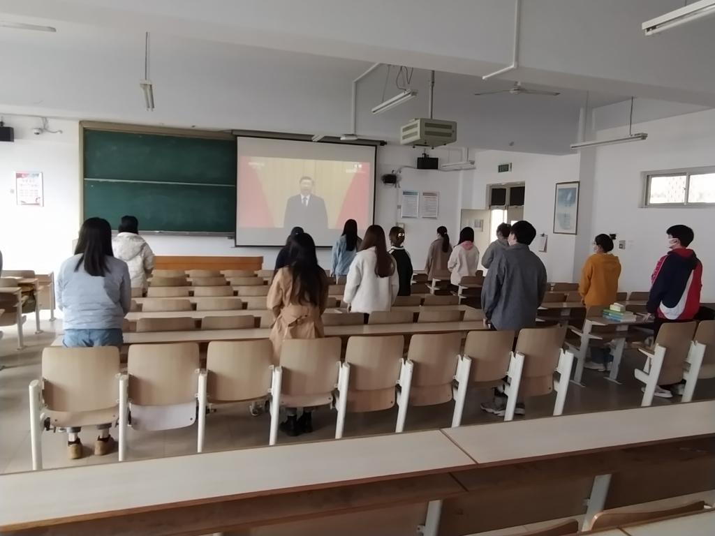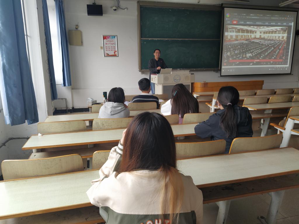 5月10日XK星空体育组织40多名在校生在昌黎校区C307教室观看了现场直播,学院党委副书记副院长孙胜显、团委书记王明洁与同学们一起观看了直播。同学们各位就坐、全程佩戴口罩。会后,孙书记与同学们一起进行了思想交流。