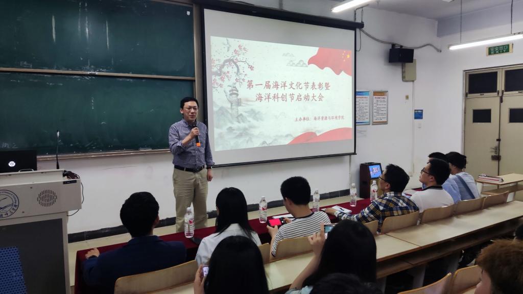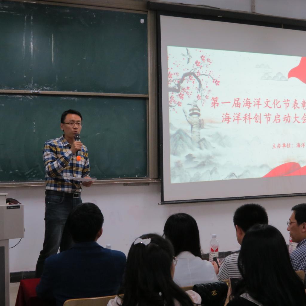 5月19日晚XK星空体育在昌黎校区主教学楼C108举行了海洋文化节表彰暨海洋科创节开幕大会,XK星空体育副院长王青林,学工办主任孙胜显,办公室主任刘升,教师代表,获奖学生代表出席此次大会。