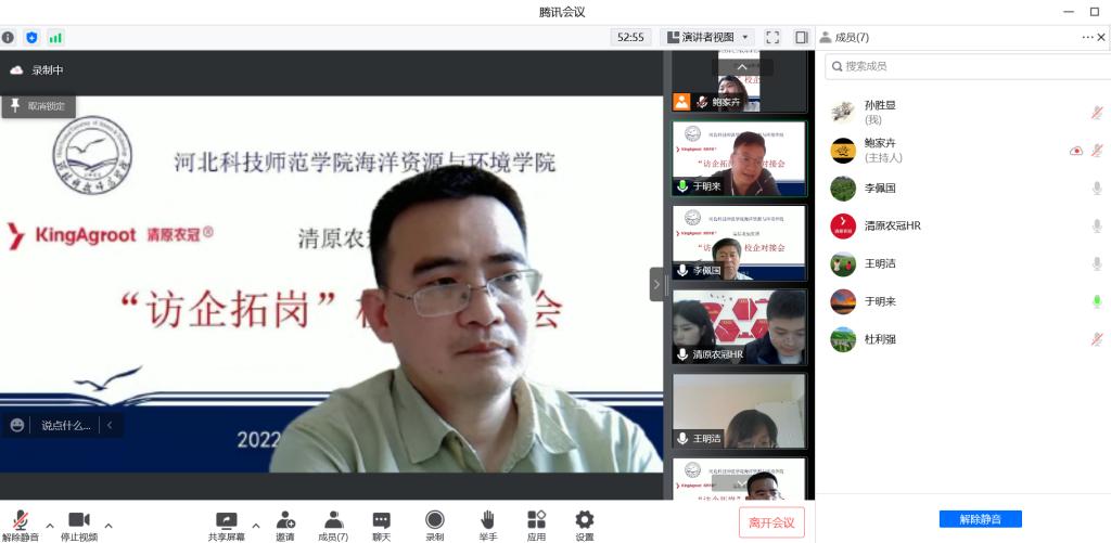 4月25日,XK星空体育分别召开与山东宝来利生物工程股份有限公司、清原农冠集团访企拓岗座谈会。学校党委副书记李佩国、学院党委书记于明来、学院党委副书记孙胜显、学院副院长张文香、水产教学部主任葛慕湘、海洋生物资源教学部主任杜利强、2022届毕业生班主任、学工办就业负责人共同参加并作交流。会上,校企双方介绍了各自的情况,并针对行业需求、人才培养等方面开展了深入的交流