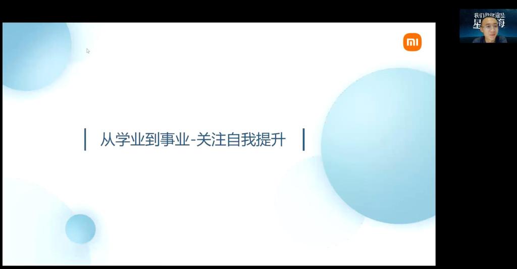 2011届生物科学专业优秀毕业生张卿,现任小米集团培训经理,以“以学业到事业”为题,提出关注自我提升,告诫同学们注重自身素质的提升,以此为未来的成功奠下基础。