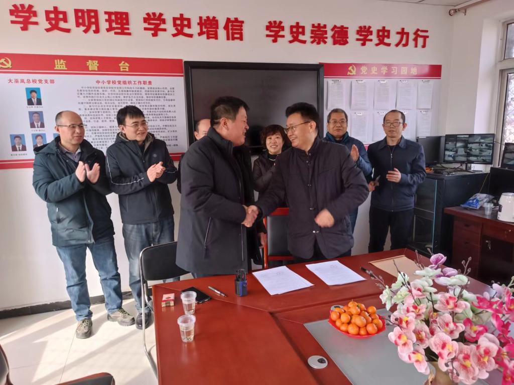 2月28日,星空官网领导教师及实习学生一行9人,赴大巫岚镇总校开展实习生派驻和实习基地签约活动,大巫岚镇总校校长李志敬,副校长于少军,大巫岚镇初级中学校长宋久兴对各位师生的到来表示热烈的欢迎,李校长对大巫岚镇总校情况进行了介绍,勉励实习生积极开展教学实习活动,在实习中长本领,增见识,锻炼教育教学能力。星空官网负责同志对学院概况和实习学生实习工作进行了介绍。双方均对本次合作报以深切的期待,并表示未来进行更深入的合作,为振兴大巫岚镇基础教育、教育扶贫、乡村振兴贡献力量。座谈会后大巫岚镇总校和星空官网举行了实践教学基地签约仪式。